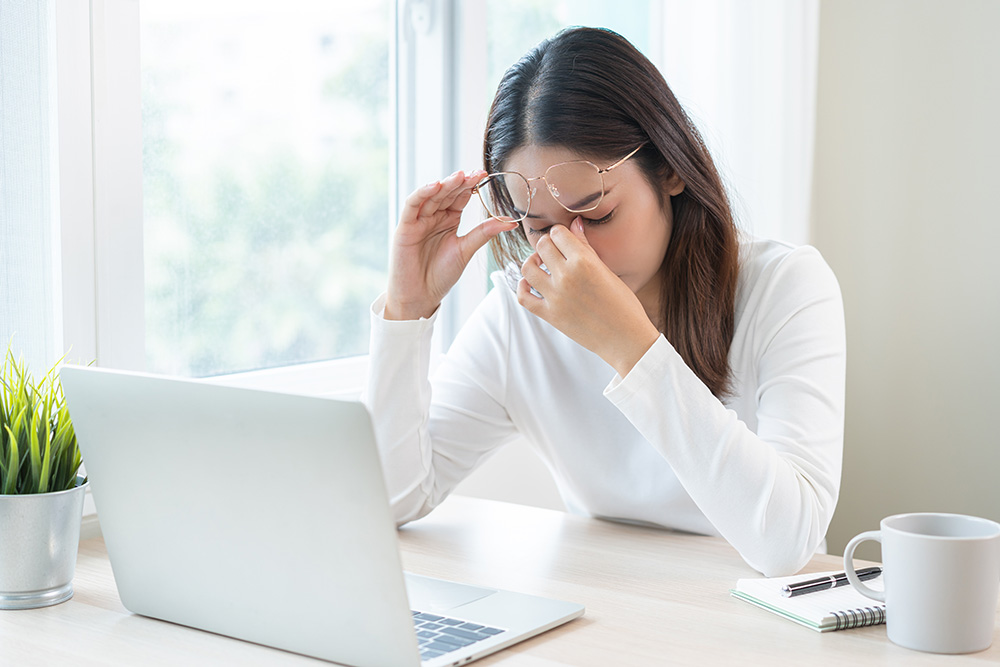 Not unlike other types of repetitive stress injuries, such as carpal tunnel syndrome, staring at a bright, flickering monitor causes the eye muscles to strain considerably more than when reading from a paper. If you experience any of the following symptoms, you may be suffering from the effects of computer vision syndrome: